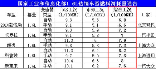 工信部:2010款悅動工況油耗6.6L—6.8L