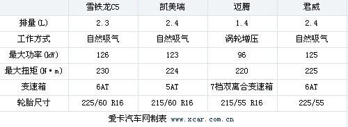 通過數據的直接比對,最大的好處就直觀的反映出各車型之間的配置差距。