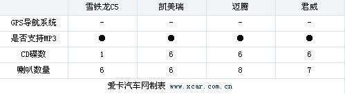 比較遺憾的是四款車都未配備GPS導航系統,消費者只能另掏腰包。而邁騰1.4T DSG車型在音響方面總共配備了8個喇叭,同級比較罕見。