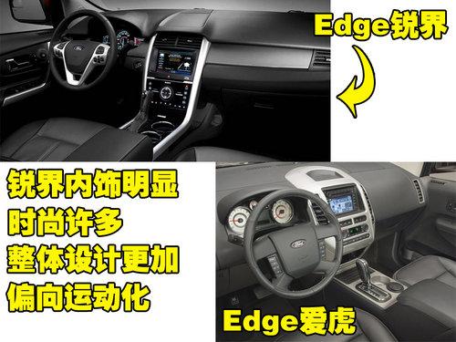 內飾的變化最為明顯,設計風格大有不同。新款Edge銳界完全秉承了福特所崇尚的運動,從方向盤及內飾整體設計風格即可看出。方向盤選擇了三幅式,多功能按鍵全部集中在方向盤上,使駕駛者可以方便操作車內功能;中控臺部分設計比老款更為成熟老道,樣式也極為舒展、流暢。