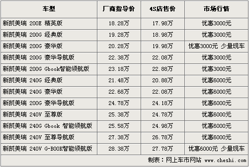 2010款凱美瑞于2010年3月1日在深圳正式上市,售價相較于09款有所調整,多款車型價格進行了官方下調。售價區間為18.28-28.38 萬元。根據網上車市價格監測系統顯示,目前2010款凱美瑞上市不到一個月就已經開始出現優惠,最高降幅達6000元。具體車型售價見下表: