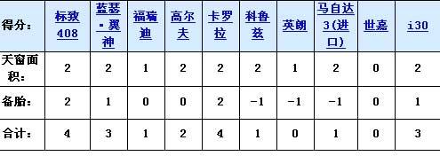 在天窗和備胎的對(duì)比中,得分最高的是408和卡羅拉,因?yàn)樗麄兌季哂泻艽蟮奶齑昂弯X合金輪轂的全尺寸備胎,而得分最低的英朗則主要是因?yàn)閭涮タ鄯郑兰蝿t是因?yàn)闆](méi)有天窗,備胎也沒(méi)有任何特點(diǎn)。