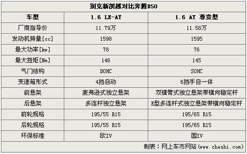 對于舒適程度見長,配置相對人性化的別克新凱越而已,購買它的人群會比較成熟穩重,適合家庭和商務兩用。而自主品牌奔騰B50 則是更看重年輕一代的需求,時尚的外觀、合高水準豐富配置,以及同級別車型無法比擬的底盤懸架系統,更適合75、80后消費人群的口味。
