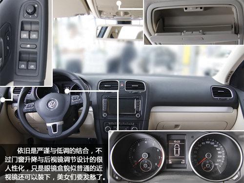 高爾夫6依然延續了大眾汽車沒有新意的嚴謹內飾設計,雖然細節感覺上有些動感的感覺,但是……不太顯眼。而且下面要說的是眼鏡盒問題,現在的年輕女性都喜歡帶上那種大大的墨鏡,但是當進入到任何一款大眾轎車的時候,你的大號墨鏡與車內眼鏡盒都是完全不兼容的……(所有大眾在華車型,包括旗下品牌)