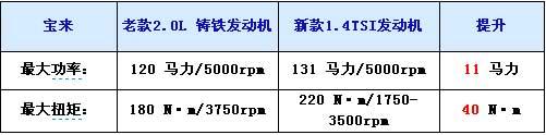 寶來2011款車型終于使用了大眾1.4T+DSG的動力組合,1.4TSI發(fā)動機最大功率131馬力,并可以在1750-3500轉的區(qū)間輸出220牛米的扭矩。相比那款鑄鐵的2.0L發(fā)動機,在最大功率上提高了11馬力,最大扭矩更是增加了40牛米之多。