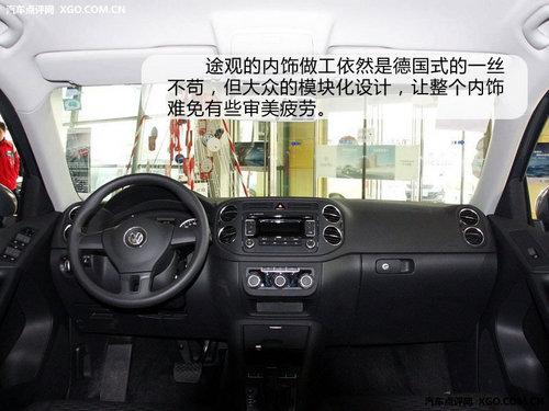 德國人的做工向來以一絲不茍著稱,國產途觀的內飾自然也不例外,用料說不上十分高檔,但厚道,做工工整,接縫整齊,讓人一看就能感受到制造者的嚴謹。不過在設計上還是有些“偷工減料”——方向盤沿襲自高爾夫6,控制臺也總讓人覺得似曾相識。總的來說,就是設計得不夠出彩,讓人難有驚艷感。