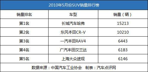 自主車領跑/途觀上榜 5月銷量前五的SUV點評