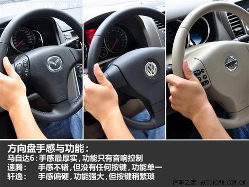 總的來說,作為頂配車型的軒逸具有的舒適性配置更高,特別是帶有倒車影像和DVD播放的中控臺彩色大屏顯得很有吸引力,而無匙啟動也十分上檔次。速騰的配置也要比馬自達6更豐富一些,特別是安全配置一直是他的強項,而尺寸更大、級別更高的馬自達6在這方面的確沒有優勢,不過話說回來,馬自達6的舒適性配置對于日常駕駛來說已經完全足夠。