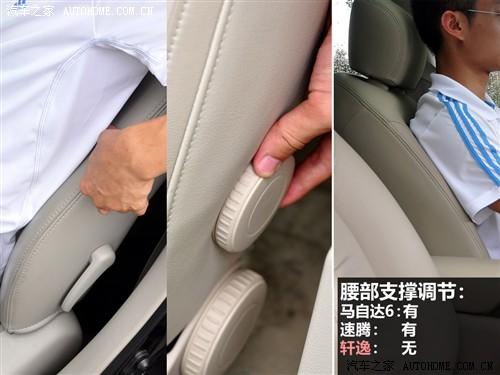在這三款車中,中型車的馬自達6具有最寬大的座椅和三組座椅記憶,只是他的天窗面積實在有點小;速騰的的配置影響了便利性,但卻是三款車中唯一有后排出風口的;軒逸的座椅就像家里的沙發一些,而且在開門的瞬間還可以自動后撤來方便上車,但幾乎沒什么包裹性可言,不利于高速行駛。