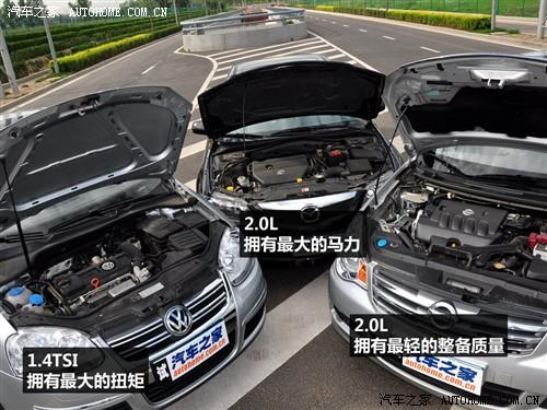 在發動機方面,馬自達6的MZR發動機是一款典型的高轉速產品,不過安裝在這款整備質量1427公斤的中型車上,動力表現盡管也不錯,但相比速騰和軒逸還是不像他們那么激進。速騰的1.4T發動機大家已經十分熟悉,盡管是三款發動機中最小的功率,但扭矩卻是最大的,而且從1800轉左右就開始爆發,所以動力性能也不錯。駕駛起來讓人感覺最快的還是軒逸,因為這款發動機本身的數據就很不錯,扭矩超過馬自達6的發動機,在我們以前的測試中突破了9秒的百公里加速成績。