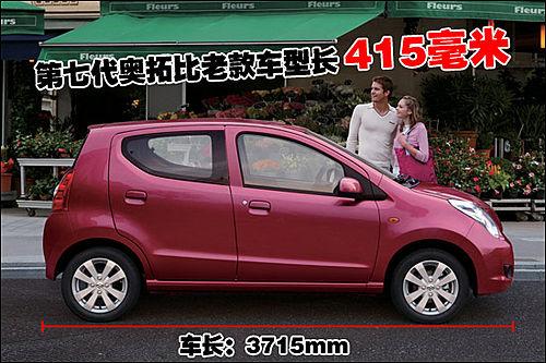 作為全面升級(jí)的換代車(chē)型,第七代奧拓的車(chē)長(zhǎng)可達(dá)3715毫米,比國(guó)內(nèi)市場(chǎng)銷售的老款?yuàn)W拓車(chē)型要長(zhǎng)出415毫米。主要是車(chē)身軸距及前臉的設(shè)計(jì)使第七代奧拓和老款車(chē)型產(chǎn)生如此大的差距,而全新奧拓的車(chē)內(nèi)腿部空間將更加寬敞。