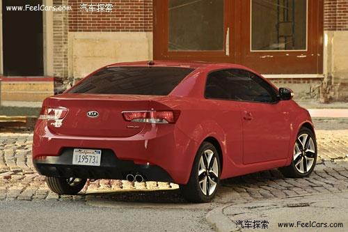 這款Forte Koup整體沿用了Forte動感時尚的外觀造型,并且在流線上更加富有沖擊力。寬大的進氣口以后后方的擾流板和雙排氣管顯示出了足夠的侵略性。