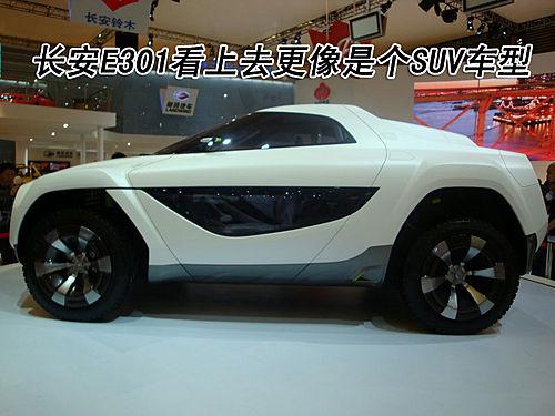 長安E301概念車的造型則大膽、新穎,是一款為追求時尚、熱愛運動、富有創新精神、勇于嘗試新鮮事物的年輕人傾力打造的雙門三座小型運動越野車。尤其是前臉的設計,非常具有創意。