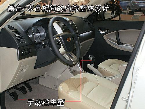 進入車內,黑色以及米色的顏色搭配很流行。由離合踏板以及手動檔變速器可知這款展車是手動版的低配車型,若能展出高配的新車相信會吸引更多的消費者關注。