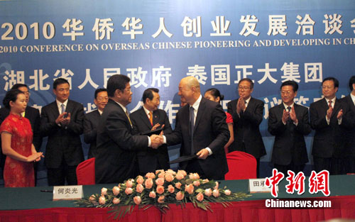 15日晚間出席簽約儀式的正大集團(tuán)董事局主席謝國民指出,在中國新農(nóng)村建設(shè)的過程中,正大集團(tuán)通過為農(nóng)民提供其缺乏的資金、技術(shù)、管理和市場并采取擔(dān)保等方式,幫助農(nóng)民規(guī)避風(fēng)險,增加收入。正大集團(tuán)希望與中國農(nóng)業(yè)大省湖北在農(nóng)業(yè)等領(lǐng)域開展合作。