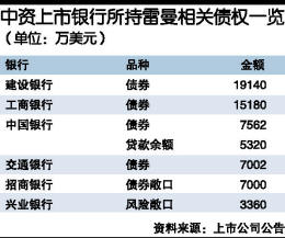 建行持有相關債券1.914億美元,中信銀行有7600萬美元風險敞口,民生銀行未持有雷曼相關債券