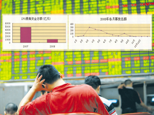 從2008年1月1日至今,上證綜指從高點5522點跌至12月12日的1954點,下跌幅度超過60%。市場深幅調整不僅使投資者“巨虧”,同時也讓IPO規(guī)模大幅縮水。