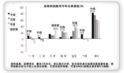 金融海嘯之后,中國、巴西、俄羅斯、印度在經濟增長以及財政上的表現令人刮目相看,股市今年以來平均漲幅逾六成,中國的漲幅超過八成,將成熟國家遠遠拋在后面