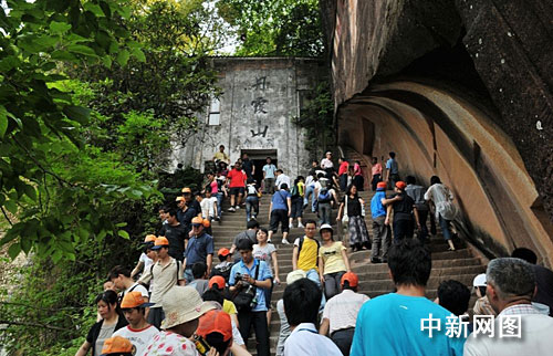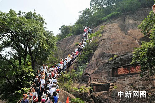 中新網韶關5月4日電(馮昶 郭世明 曾明)廣東丹霞山今年五一小長假游客火爆,3天內接待游客突破11萬人次,同比增長一倍以上,創歷史新高;旅游總收入達2500萬元,同比增長7成多。