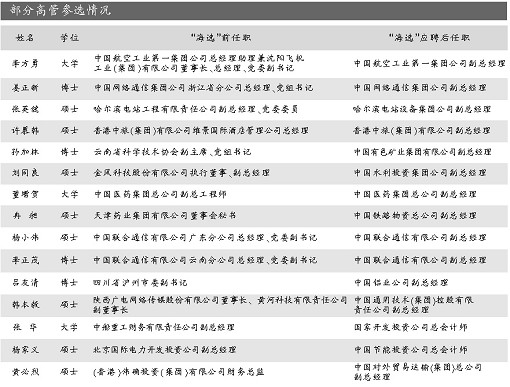 2008年7月8日,國資委發布消息,將面向海內外公開招聘16名央企高管,這已是國資委第6年公開招聘央企領導。據統計,前5年,通過這種方式一共招聘了91名高管。那么,這些高管現狀如何,這種“海選”的方式是否科學有效?