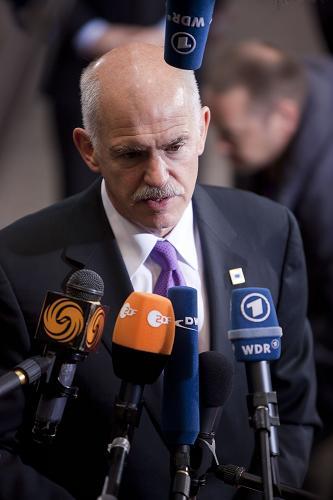 5月7日,希臘總理帕潘德里歐抵達比利時首都布魯塞爾歐盟委員會總部后接受采訪。歐元區(qū)16國領(lǐng)導(dǎo)人7日晚間在布魯塞爾召開特別峰會,評估各國議會對2日啟動的希臘救助機制的審批情況,并重點討論如何加強歐元區(qū)經(jīng)濟治理以及強化對成員國的財政監(jiān)督問題。 新華社發(fā)(莫納斯攝)