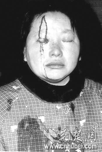“要干什么?兄弟們要好好招待你一下。”對方說著抄起一只板凳砸在唐英的頭上,唐英頓時頭破血流。妻子戴開榮見狀欲上前阻攔,也被那伙人一頓暴打,暈倒在地。