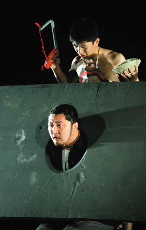 《回家》講述了一位老年癡呆癥患者想回家卻不能如愿的經歷,不同于單線條敘述或故事性較強的商業話劇,該劇主角只是不斷夢囈,訴說著對自己的不滿、對過去的自責以及對當下社會的種種困惑。全劇看似凌亂發散,實則容納了大量的信息,地溝油、三聚氰胺、畢業即失業、高房價、全球變暖、視頻裸聊、不再有一輩子的感情等一系列社會熱點問題都被搬上了舞臺……雖然主題嚴肅,但也不乏笑點,演出過程中現場不時爆發出觀眾會心的笑聲。該劇的舞臺設計相當“樸素”,在相對空曠的舞臺上,主演黃澄澄和趙雷棋并沒有通過化妝去表現角色的年齡感,而是在揣摩老者的心理特征和思維方式后,以表演呈現出蒼老感。其他年輕演員也表現不俗,尤其在結尾處,他們以大量夸張的肢體動作配以聲嘶力竭的控訴,掀起了全劇的最高潮。
