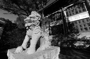 在文津街國家圖書館門前,一對威武的石獅滿面滄桑,雙爪和臀部還有修補的痕跡。“沒錯,這對劫后余生的石獅就是來自圓明園。”傳達室的守門人對石獅的來歷略知一二。石獅長170厘米,高約300厘米。上世紀30年代由圓明園移至此處。