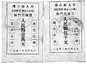 ?谀壬依锉4嬷鴥蓮埈偵娇h發動百姓向志愿軍捐款,購買“瓊山人民號”飛機的證明捐款票證。 沈善東 攝