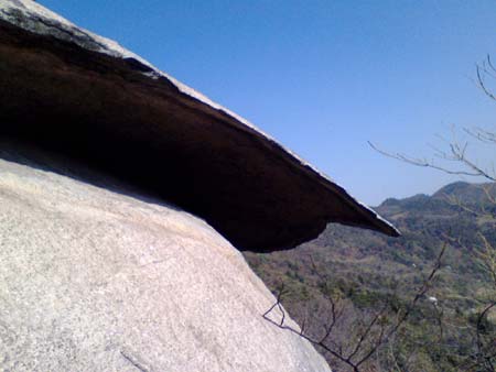如此看來這塊石頭真是屬于1/36501的小概率事件,試想,在無數(shù)年前的某次造山運動中,一塊巨石被拋到另一塊石頭上,而接觸點正好位于它的重心附近。所謂生命不就是矛盾統(tǒng)一、平衡之后的產(chǎn)物嗎?