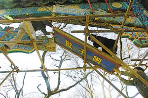昨晚8時許,北京市文物局負責(zé)該牌樓修繕的王先生說,國子監(jiān)牌樓是民國時期修成的,2002年曾翻修,具有相當(dāng)大的文物價值。這次遭受重創(chuàng)真是可惜。