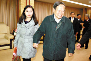與翁帆十指緊扣高校演講 楊振寧作詩述心境(圖)