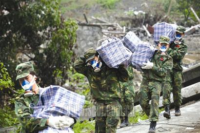 張新是四川省檔案局副局長,著名的檔案專家,他這次專門會同當(dāng)?shù)貦n案部門對北川檔案館進行搶救性發(fā)掘。“這次搶救性挖掘難度非常大,必須要掀開‘蓋’在廢墟上的這層樓面。”“通信連、尖刀連、接力連……上!”隨著300多名官兵呈扇形“包圍”廢墟,戰(zhàn)士們從廢墟頂端一直排到地面,挖掘、傳遞、裝箱、登記,每一卷“出土”的檔案都經(jīng)過了無數(shù)雙帶著體溫的手,小心翼翼地傳遞著!罢业搅,這里有7箱比較完整的檔案!敝形1時許,幾名戰(zhàn)士從兩塊拱立的水泥板下刨出了一箱箱淺藍(lán)色檔案柜;焦急等候在一旁的檔案局工作人員趕緊迎上去,面帶喜色。隨著一卷卷記錄羌族政治、文化、經(jīng)濟等的珍貴檔案“重見天日”,搶救現(xiàn)場的人們臉上露出了如釋重負(fù)的笑容。