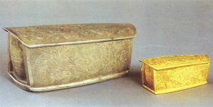 正在鎮江展出的甘露寺鐵塔地宮金棺銀槨。