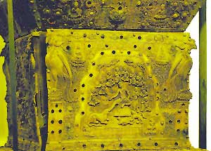 蔣老告訴記者,七寶鎏金塔是分開組裝的,由塔剎、山花蕉葉、塔身和塔座組成。他從塔身部位的側面一個破損的縫隙中,可以看見寶塔的木制結構。目前,從X光探視圖分析,其中盛放著銀槨,銀槨內還放著一個金棺,金棺內可能有一個琉璃盒,里面應該供奉著石碑上記載的:“圣感舍利十顆”、“佛頂真骨(釋迦牟尼)”、“諸圣舍利”。那么這批圣物究竟是從何而來的呢?