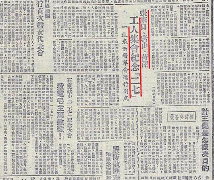 7.1949年2月17日《人民日報》第2版刊登的報道:張家口、唐山、菏澤工人集會,紀念“二七”,一致表示將革命進行到底