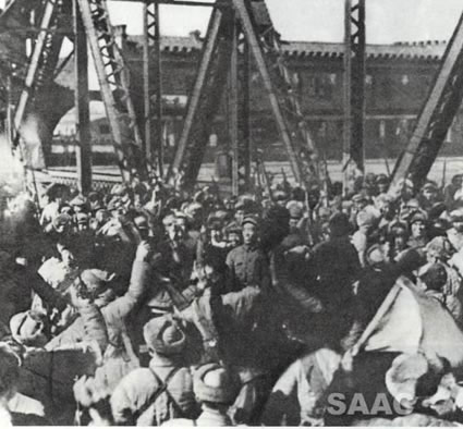 8. 1949年1月15日,天津解放,人民解放軍參戰部隊在海河金湯橋上勝利會師