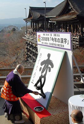 日本的漢字熱潮其實始于去年北京奧運會開幕式上的漢字表演,尤其是活字版的出現令日本人十分驚嘆,并由此引發了一波日本的漢字熱!冻招侣劇贩治龇Q,隨著老齡化而不斷激增的老年人為了預防老年癡呆癥,開始熱衷于猜漢字詞語。隨著老齡化時代的到來,日本65歲以上老年癡呆癥患者已經超過170萬人。而隨著大學和高中在入學考試中開始重視漢字,青年群體也加入到漢字熱潮中。目前,日本有492所大學和399所高中在入學考試中為漢字檢定考試合格者加分。