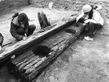 昨(3)日,在現場負責發掘的考古人員張擎帶領下,記者進入了考古現場,映入記者眼簾的是一些橫木和柱子。保存較為完整的一根柱礎底板長3.4米、寬0.45米、厚0.3米,其上有4個圓形柱洞,最高的一根立柱,高1.4米、最大直徑0.3米。這都是些什么呢?“這可是本次發掘的最大發現,超長的豪華漢代廊橋!”張擎激動地說,“從木橋的結構和古河道內出土的遺物推測,這座木橋是漢代典型的建筑,結構與2001年在金沙遺址蘭苑地點發現的漢代木橋完全相同,民間又叫它‘風雨橋’!