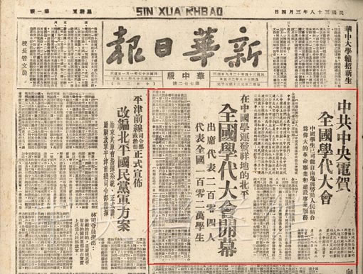 5. 1949年3月4日,《新華日報》關(guān)于全國學代大會的報道