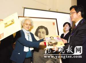 儀式結束后,烈士家屬們共同來到雨花臺烈士紀念館參加座談會,參加活動的烈士家屬中,有來自北京的劉愛琴老人。她是共和國主席劉少奇的女兒,她的母親就是長眠在雨花臺的何寶珍烈士。昨日,她將母親的一幅巨型畫像捐贈給了雨花臺。