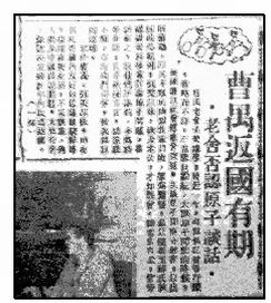 曹禺老舍去美國(guó)講學(xué),將近一年,報(bào)間偶記彼等行蹤,皆略而不詳。正當(dāng)舉世紛紜,大議原子彈的時(shí)候,美國(guó)通訊社曾傳老舍談話,主張?jiān)訌棏?yīng)守秘密,以出制蘇聯(lián)。以其不類此幽默作家口吻,群為驚怪。最近隨馮玉祥氏挾國(guó)的吳組緗,到美以后,詢及老舍,才知誤會(huì)。據(jù)老舍自云,曾旁聽(tīng)歐美科學(xué)家討論原子問(wèn)題,事誠(chéng)有之,但他們所講的,多為科學(xué)術(shù)語(yǔ),且多歐洲方言,聽(tīng)還聽(tīng)不懂,豈有班門(mén)弄斧,發(fā)表談話的道理。