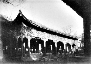 照片上可以看到,大殿有8根立柱,屋檐處雕刻有精美的圖案。雖然庭院雜草叢生,但大殿保存基本完好。據悉,該照片是在一次拍賣前的預展中被首次公布,隨后引起眾多專家學者的關注,經反復鑒定分析論證,基本斷定此照片所拍攝的主體建筑為圓明園四十景之一的濂溪樂處知過堂大殿。