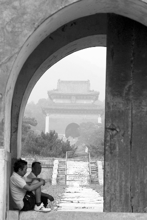 相比定陵的任你看個夠,永陵卻是神秘又神秘。在得到李德仲的允許后,司機驅車帶記者來到永陵。斑駁的路面,全是大城磚鋪砌,朱紅色的墻顏色已經陳舊,木頭大門已見破損。攝影記者剛要踏進大門,一位師傅就板著臉喝止。他倚坐在門檻上,一臉威嚴:“不能進,里面有探頭!”記者便乘機和他聊了起來,他姓齊,是新一代的守陵人。從上世紀80年代開始,他就擔任守護永陵一職,每天的生活非常簡單,睜開眼睛就是守在永陵的門口,偶爾聽聽收音機。齊師傅通常都是坐在永陵入口的青石門檻上,手里一個對講機。偶爾對講機會響起聲音,那是十三陵管理委員會通知他,有專家要來參觀了,做好接待準備……不過,相比定陵和長陵,來這里參觀的人實在少之又少;大多數時間,老齊都是兩眼看著紅色斑駁的大門,還有門檻、破碎不一的城磚鋪砌的路面。