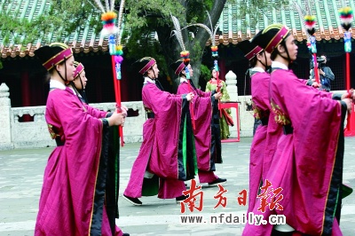 山東曲阜作為儒家文化的發源地越來越引起國際關注,圖為祭孔的場面。