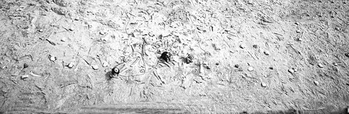 為什么叫恐龍澗?記者決定一探究竟。在諸城龍都街道庫溝村北的一個(gè)小嶺下,一條被塑料布和草氈覆蓋的隆起帶橫亙?cè)邳S土丘之間。考古人員向記者介紹說,這是其中一處大型恐龍群的“墓地”,因化石眾多,所以得名“恐龍澗”。