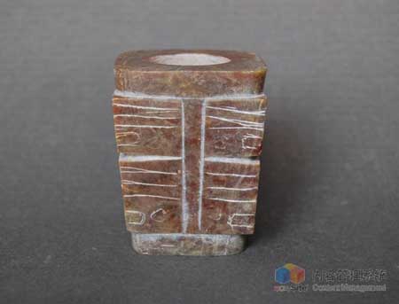 已發(fā)掘的4座規(guī)格較高的出土玉琮、玉璧的墓葬都分布于北片墓地的東北部。這些墓葬中尤其重要的是16號墓(南部殘),它出土了玉琮和有刻劃符號的玉璧。該件玉璧直徑24.7厘米,上面刻劃著兩個符號,一個位于玉璧正面,另一個位于側(cè)邊緣。這是首次經(jīng)正式考古發(fā)掘出土的良渚文化有刻劃符號的玉璧,也是迄今為止省內(nèi)考古發(fā)掘出土的直徑最大的良渚文化玉璧。21號墓出土的玉琮上紋飾刻劃得較粗糙。