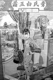 轉眼來到廣告畫月份牌展位,南洋兄弟香煙、旁氏白玉霜化妝品(圖二)以及蘭閨試鞋圖等廣告,從一個側面反映了辛亥革命帶給中國的社會變遷,極具觀賞性,畫面中女性的時尚與靚麗讓章開沅不禁贊嘆:民國時期的女性很會打扮嘛!