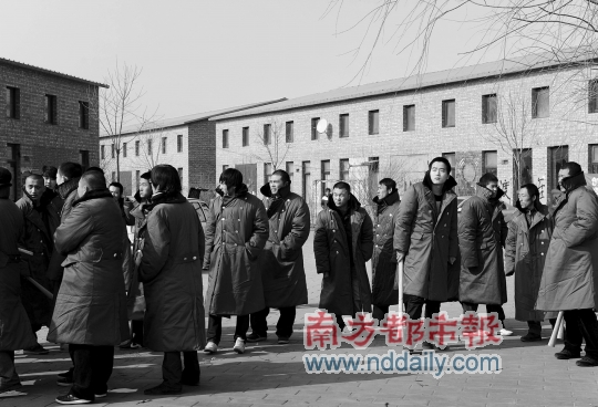2月23日,正陽藝術(shù)區(qū)值班的藝術(shù)家們,只得圍坐在炭火邊取暖。自2009年11月起,藝術(shù)家們原先租住的房屋已經(jīng)被斷水?dāng)嚯姡耙惶,原先可生爐子居住的維權(quán)辦公室,已被不明身份的人士用大型機(jī)械掀去屋頂,房門及窗戶等均被砸爛。