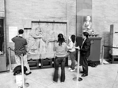 賓大博物館中國館中的文物修復(fù),并未影響其對外開放,專家們的工作,完全是敞開式的,觀眾可隨意參觀。許多觀眾對西安的文物專家表示欽佩。一位名叫程佳來自北京的中國留學(xué)生在“兩駿”現(xiàn)場告訴記者:賓大博物館的中國館不錯,從青銅獅子到二駿馬,從慈禧的水晶球到一尊尊的佛像。讓我們這些留學(xué)海外的學(xué)子既自豪又感慨。自豪是因為這一件件藝術(shù)展品都滲透出我們博大精深的幾千年文明,感慨是因為這些展品也同樣記錄了當(dāng)年屈辱的歷史。